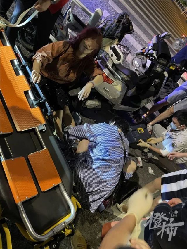 “受伤的是一个姑娘,左足一直在出血,当时有另一个姑娘在帮忙按压止血,我赶紧过去帮忙。” 庾瑾说。