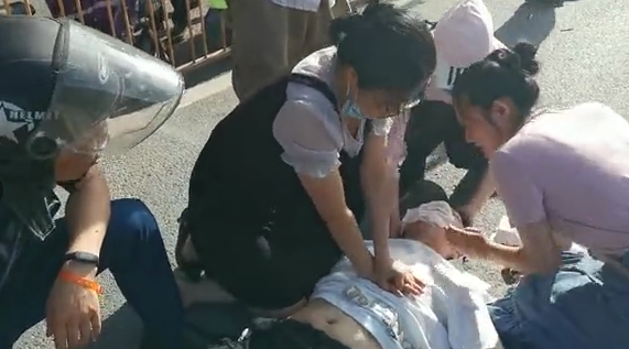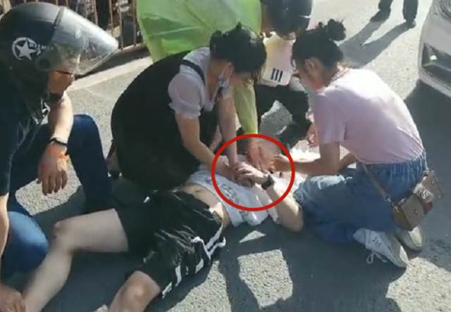 “我是路过的,之前有个大伯在帮忙做胸外按压,我也是接力在做,小伙子当时颈动脉搏动很弱,甚至一度心脏骤停,当时一心想着救人,具体按压了多久我也不清楚,后来有个小姑娘也来了……”
