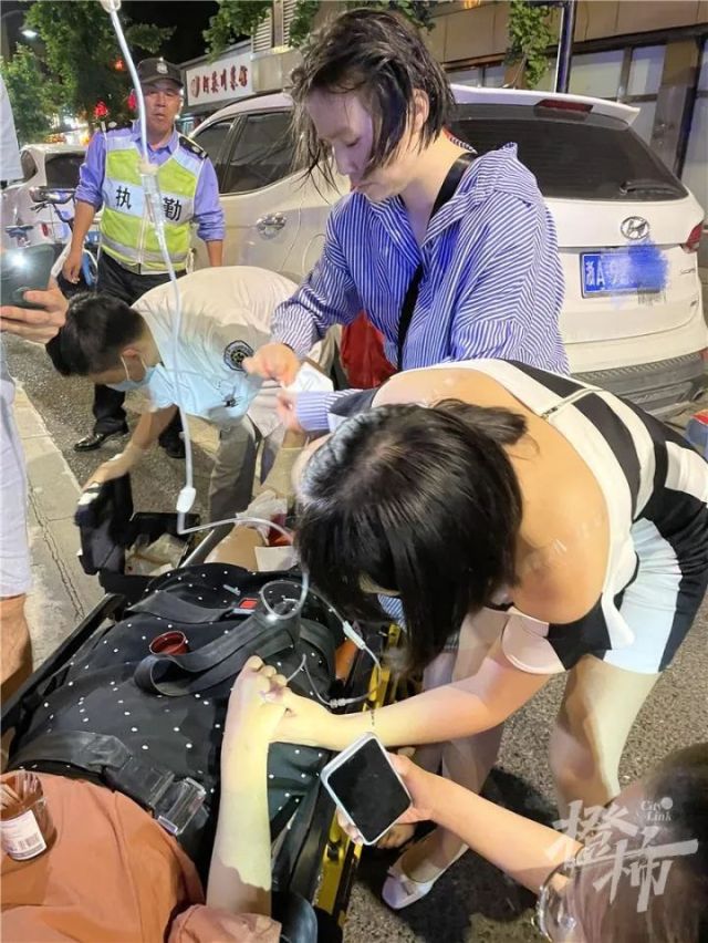 “具体过了多久也不知道,后来120急救来了,帮忙的小姑娘才稍微松了口气,因为她要不停给伤者伤口处按压止血,一旦松开,出血量就会很多,我看到她手一直在发抖。”庾瑾说。