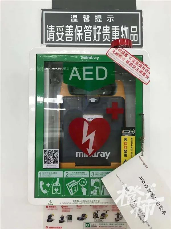 有人拿来毯子垫在男子身下,工作人员第一时间拿来AED除颤仪,还有人及时拨打120。