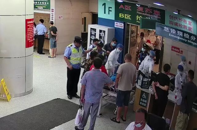 到达急诊室门口后,队员们协助医护人员和伤者家属,将女孩抬上急诊病床,陪同其母亲办理急诊挂号手续,直到将其送入急诊室,才松了一口气。