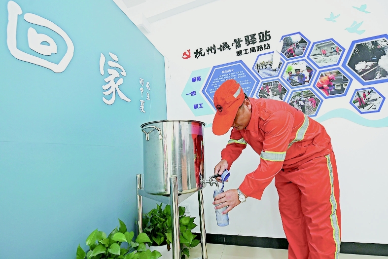连续高温天里,在临平从事道路保洁工作的环卫工人周大伯,工余时间来到南苑街道上的杭州银行余杭支行“爱心驿家”歇脚。“这里的服务太周到了!我们干活干累时有地方休息了,带个饭能在这里用微波炉热一下,工作人员还为我们准备茶水、绿豆汤。真的很感谢!”周大伯说。