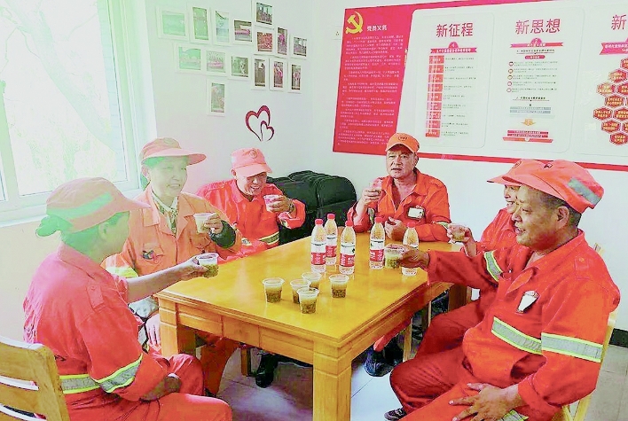 位于岳王路的杭州市职工服务中心“爱心驿家”,不仅是环卫工人的休息点,也是快递员、公交司机、出租车司机的“加油站”。在这里,他们可以倒上一壶养生茶,吹吹空调,解除户外作业的暑热。“人多的时候,我们一天要供应三四桶养生茶。”市职工服务中心工作人员乐呵呵地表示,免费供应茶水的服务已经开展了两年了,受到户外工作者的一致好评。