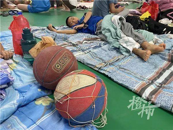 华中社区避灾安置点在青蓝青华实验小学,300多名工人住在二楼羽毛球馆。