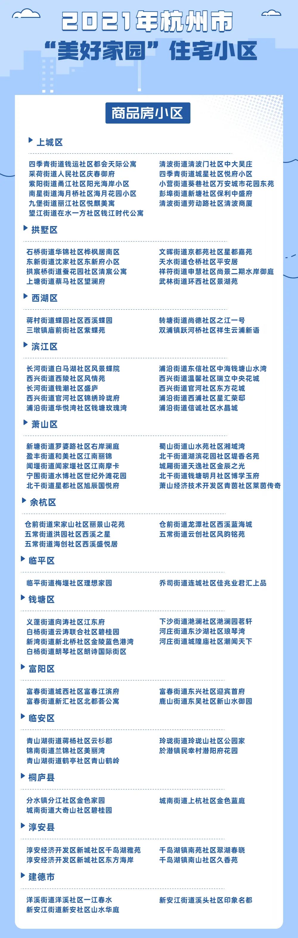 杭州发布消息:昨天,杭州公布了2021年“美好家园”住宅示范小区名单,148个住宅小区入选!什么是“美好家园”?来看看你家小区上榜了吗?