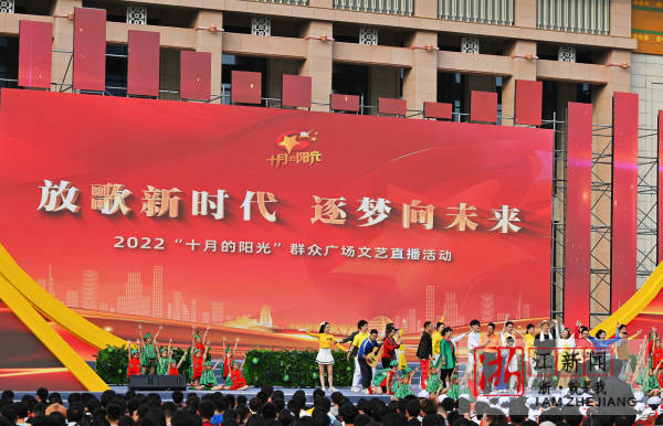 浙江新闻客户端讯 10月30日下午,2022“十月的阳光”群众广场文艺直播活动在杭州武林广场隆重举行。演出以“放歌新时代 逐梦向未来”为主题,通过音诗画、朗诵等多种表演形式,展现浙江儿女深入学习贯彻党的二十大精神,奋进“两个先行”新征程的生动实践。