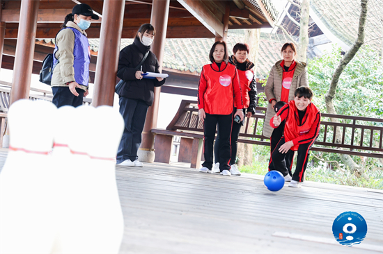 而保龄球场地也是热闹非凡,老人们渐渐找到手感、摸到规律,轻松一滚便能击倒好几个木瓶,赢得一阵叫好声。