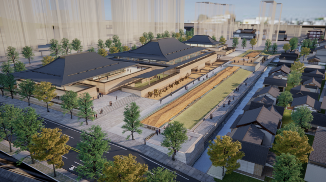 该区域于去年上半年动工建设,主要包含主殿、厢房、长廊等8个单体建筑及绿化等工程,目前整体进度已经完成95%左右。据了解,净土寺遗址覆棚建筑是根据考古部门推测的寺庙格局建造的。建筑整体营造五代吴越国风格,既保持了与遗址本体的可识别性,也提升了与周边环境的协调性。