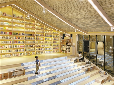 前几天,我去新侨饭店,惊讶地发现酒店大堂吧成了一个书房。除了图书外,还有非遗产品的展示,空间布局很有层次。那天还有小朋友的活动,老师在讲解中国的古桥,孩子们听得兴致勃勃。