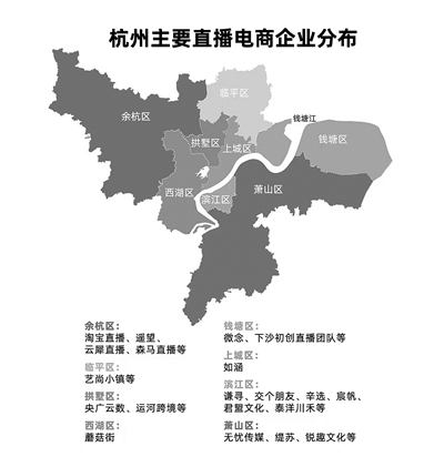 在杭州,直播电商企业主要分布在滨江、上城、余杭、拱墅、临平、钱塘和萧山等几个城区。