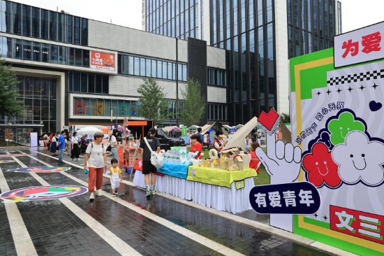 活动中,流动党员韩成洋带来的三幅慈善油画《望文三》《忆文三》《绘文三》被竞相拍卖,广场上“爱的后备厢”公益义卖活动火热进行。5元2本的儿童英语绘本、9.9元三瓶的冷泡茶、10元的手工摆件……聚小爱成大爱,26家企业和个人参与义卖。