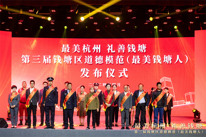 4月12日下午,杭州市钱塘区举办了“最美杭州 礼善钱塘”第三届钱塘区道德模范(最美钱塘人)发布仪式。活动现场对2023年度在各个领域展现出色道德品质的模范人物进行了集中表彰。
