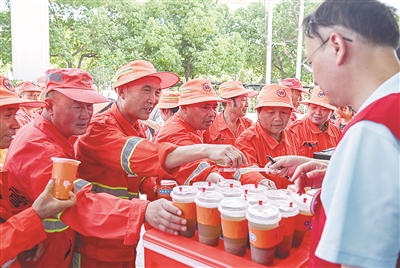 “每份清凉产品,均由政府和爱心企业共同提供,将免费‘进行到底’。”拱墅区综合行政执法局相关负责人介绍,关心关爱户外一线工作者,是“城驿清凉铺”的开店初衷。本次活动中,拱墅区综合行政执法局动员了全局260名党员同志,轮岗进驻10座驿站,接下来一个月的时间里,他们将化身“城小二”,为一线户外工作者和市民群众送上清凉“福利”。