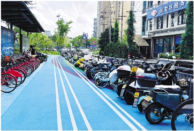 地铁善贤站B2口非机动车停车泊位。市综合行政执法局(市城市管理局)供图