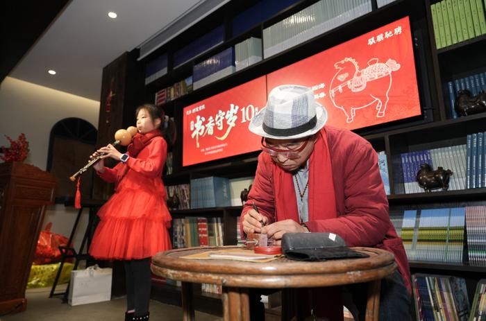 2017年丙申除夕,首届“书香守岁”在拱宸书院点亮。“书香守岁”发起人、拱墅区新联会副会长任轩回忆起当时场景,百位读书人联袂倡议“书香守岁就是好家风,阅读就是回家”,大家一起诗话守岁、跨火盆、子时开笔,为传统年俗注入一缕书香。