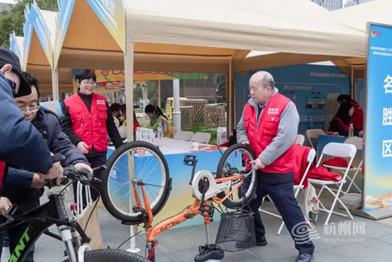 展览馆外的武林广场上,孔胜东修车铺、“武林大妈”、“小青荷”等20余个服务摊位同步开展理发、义诊等便民服务,吸引众多市民参与。其中,孔胜东修车铺已连续40年传递温暖,从“一个人”发展为“一群人”,成为雷锋精神的生动注脚。