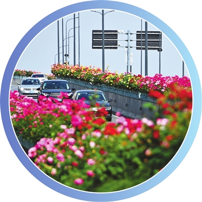 每至“五一”“国庆”前后,杭州高架(立交)上数百万株月季就会如期绽放,车行其间,宛若穿梭在童话般的“空中花廊”之中。