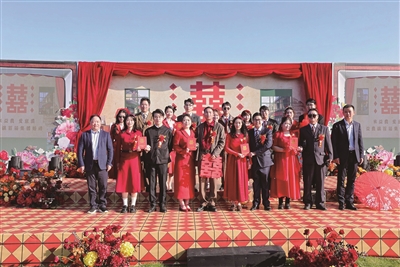 日前,在党湾镇裕民村文化礼堂,一对新人以“优礼村宴”模式举办婚礼。村里实行“三书六礼”制度,婚礼酒席控制在20桌以内,每桌不超过2000元,村“幸福帮帮团”志愿服务队主动承担起喜宴服务工作,村里送上健康茶饮伴手礼、文艺节目,倡导节俭办宴、弘扬文明新风。